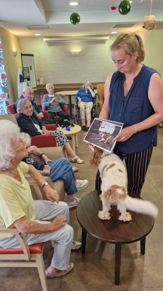 L’association des cavaliers du cœur nous a proposé pour cette fin juin un jeu de mémoire. Avec nos résidents, Bérénice a fait un récapitulatif de tous les animaux dont on a parlé tout au long de l’année de septembre à juillet. Le questionnaire était constitué d’images, de photos d’empreintes , de comportement etc... Nos pensionnaires ont du reconstituer les puzzles afin de trouver les réponses, une manière ludique de faire travailler sa mémoire, sans oublier Una et Mario les 2 cavaliers King Charles venus se faire chouchouter avant la trêve estivale .