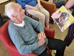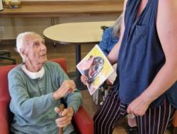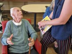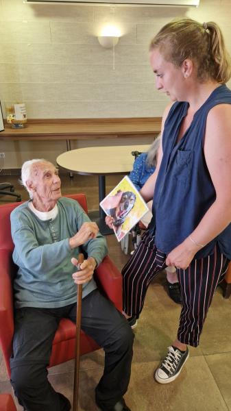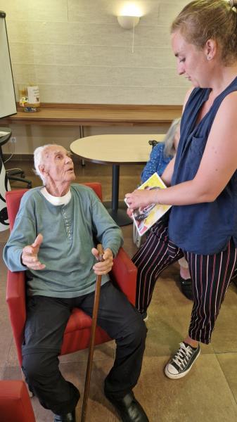 Bérénice fait jouer les résidents à un jeu de mémoire