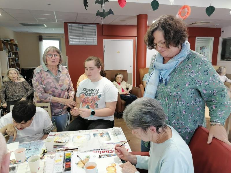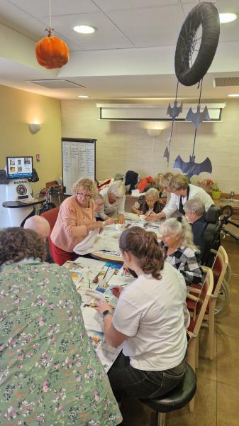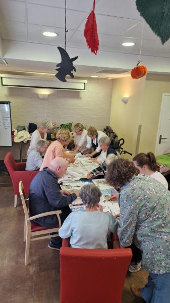 Les plasticiens des Couleurs Revestoises étaient très attendus. Un retour sur le thème de l’automne. De magnifiques citrouilles, des renards ou des forêts aux douces couleurs de l’été indien. Le résultat est à la hauteur de cette belle ambiance de retrouvailles autour d’une table plus que motivée. La pause estivale n’a pas mis à mal le talent de nos résidents!