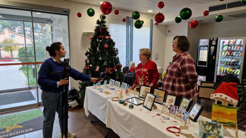 C’est dans un bel esprit de Noël que les artisans ont installé leur stand pour notre petit marché de noël. A l’abri du froid ils ont pu proposer leurs créations ( tableaux, parfums, vêtements, miel, bijoux, diamonds painting, crochet…), à nos résidents, leurs familles et aux équipes , ravis de pouvoir compléter leurs cadeaux de noël, sans sortir de la résidence. Un véritable succès avec un goûter aux odeurs de noël, crêpes et jus de pommes chaud, où nous avons eu le plaisir d'accueillir deux élus du Revest-les-eaux, ainsi qu'une journaliste de Bfmtv var.