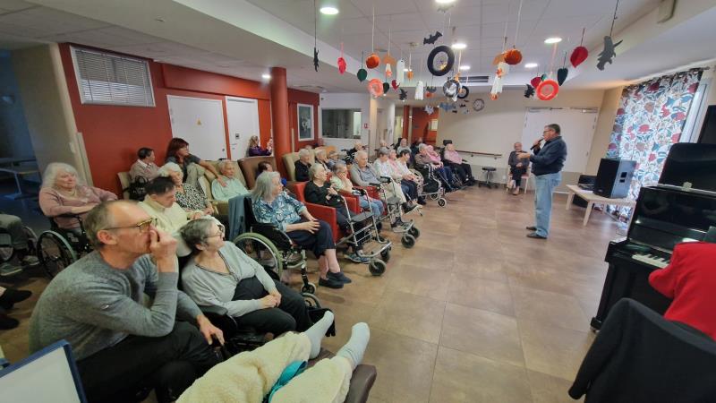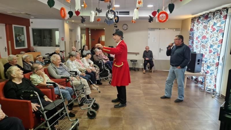 A chacun de ses passages , Jean-Michel Rovelli , surnommé le pianiste fou, nous propose un spectacle complet avec beaucoup d’humour et de bienveillance. Pianiste d’exception, il entraine les résidents sur des airs de guinguette, de musique classique ou de variété. Sa voix qui résonne habituellement dans les églises s’associe à merveille à son show et à sa clownerie, ses fausses chutes et sa série de claquettes enjouent nos pensionnaires qui n’ont pas hésité à pousser la chansonnette.