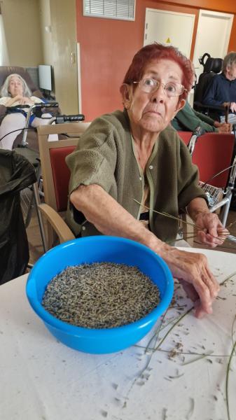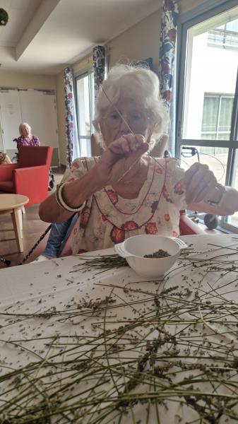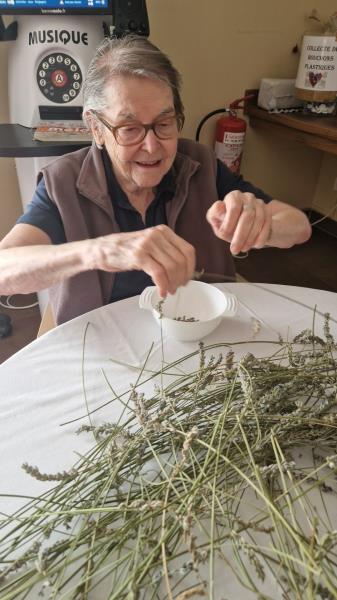 Elles sont de retour, malheureusement victimes des grosses chaleurs nos lavandes avaient périclité, mais grâce à de gentils donateurs nous avons pu reprendre nos ateliers lavande qui ont embaumé tout l’étage. Après l’égrainage , nous réaliserons des sachets en tissu provençal, afin de confectionner des sachets de lavande que nous vendrons au profit de nos associations préférées. Alors si vous taillez vos lavandes , pensez à nous!!