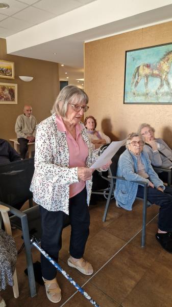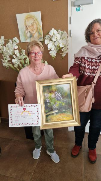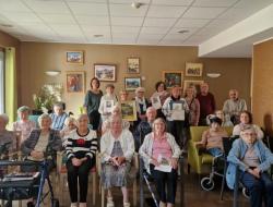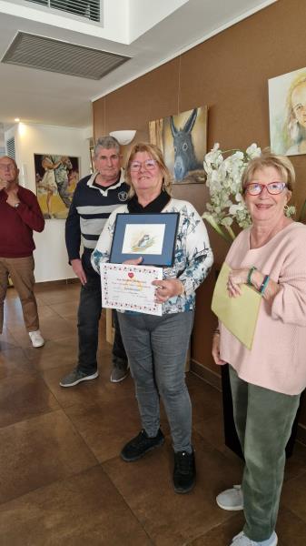 Il a fallu plusieurs ateliers de débat pour que nos résidents élisent leurs 3 tableaux préférés. Ce n’était pas une tâche facile vu la diversité des œuvres proposées par les artistes des couleurs revestoises. Le premier prix est décerné au tableau « Mimosa » de Clô Pellat-Finet, le second à l’œuvre « un banc de pierre » d’Hélène Martino-Ducroux et la 3ème place du podium à l’aquarelle « oiseau triste » de Nicole Mazingue, un beau moment qui s’est terminé autour du verre de l’amitié.